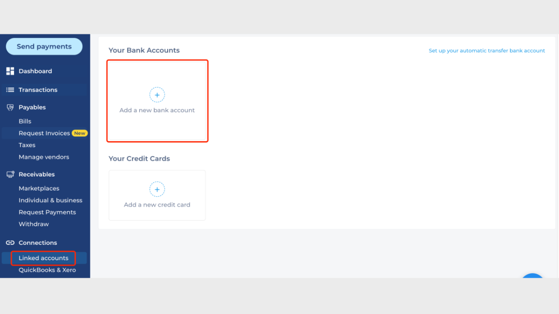 Step 2: Click “Add a new bank account” under the“Your Bank Accounts” section.